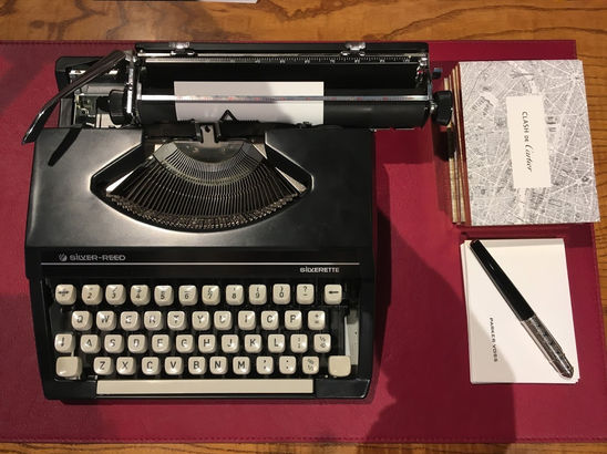 Wielding a beautiful vintage typewriter, I write personalized poetry